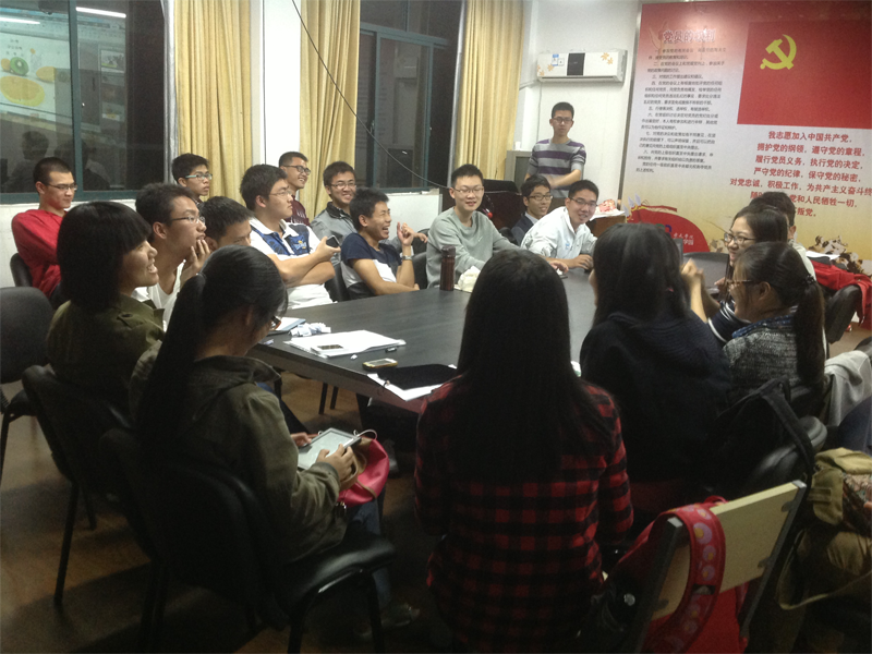2013年11月1日星期五晚上8:30,临床1105的23位同学欢聚蓝田六舍党员之家。一场关于班级文化建设和未来职业的讨论会在此展开。团支部书记阮基浩和班长王瑜琪主持了会议。