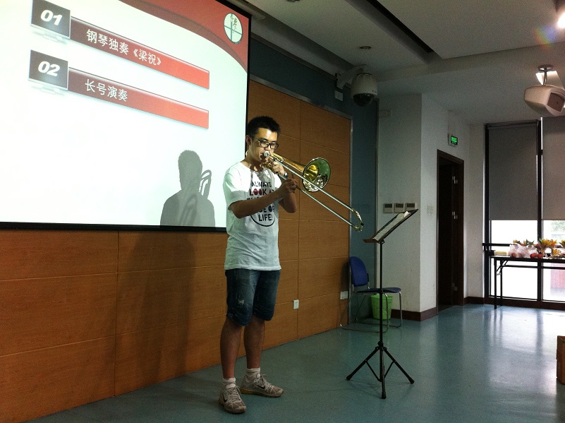 “有这样一群可爱的人,就像母亲一样,无私地为我们奉献着。她们,就是我们的保洁阿姨。”正如主持人阮基浩所说,保洁阿姨们素日里辛勤劳作、无私奉献,正值母亲节之际,同学们理应心怀感恩、传递真情。首先,由陈乡、严嘉宁为阿姨们带来钢琴独奏和长号表演。一曲熟悉的《梁祝》,悠扬美妙的旋律中带着舒缓和愉悦。长号嘹亮的音色配以幽默的曲调,趣味非凡,使现场爆发出阵阵笑声和掌声。