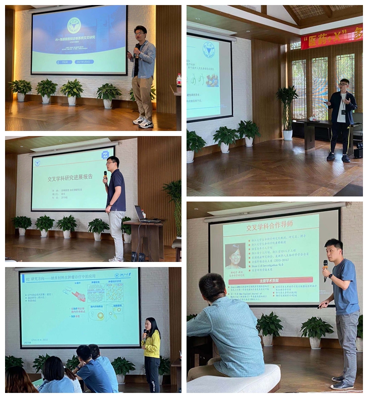 在上午的交叉学科师生交流会上,吴迪、方钲清、薛乐、黄赫辰、胡秋慧共5位来自不同学科方向的同学就自身的交叉研究课题进行了汇报,并与在场的导师以及其他同学进行了深入的交流。在医学与人工智能交叉领域,来自眼科学专业的方钲清同学汇报了其在角膜病人工智能辅助诊断方面的研究,来自影像医学与核医学专业的薛乐同学介绍了人工智能在核医学分子影像领域的研究进展。在医学与材料交叉领域,来自影像医学与核医学专业的胡秋慧同学介绍了纳米材料在肿瘤诊疗中的应用,而肝胆外科专业的吴迪同学则展示了其在近红外二区成像在肝胆领域方面系统性的工作。最后,在医学与大数据交叉领域,肝胆外科的黄赫辰同学介绍了肝癌早期诊断与预后评估方面的系统性研究。