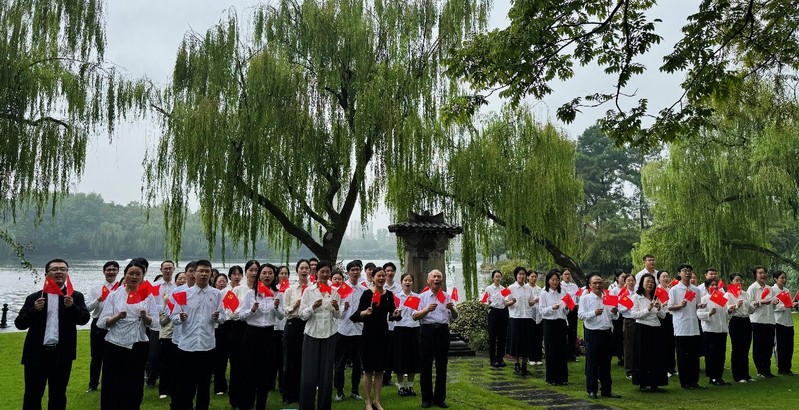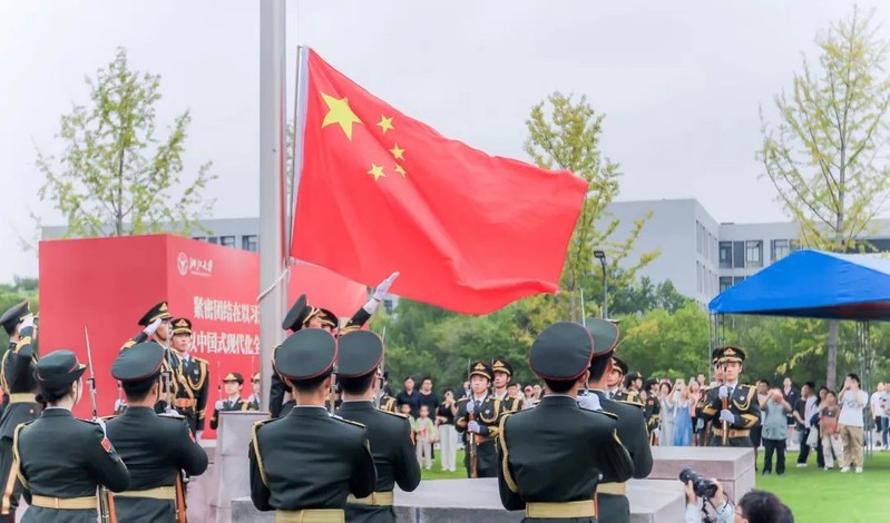 2024101日清晨,浙江大学举行2024年国庆升旗仪式,鲜艳的五星红旗在七大校区同步冉冉升起。浙江大学两千余名师生齐聚紫金港校区南大门,广大师生代表同聚五星红旗下,共襄升旗盛典情,庆祝建国75周年。