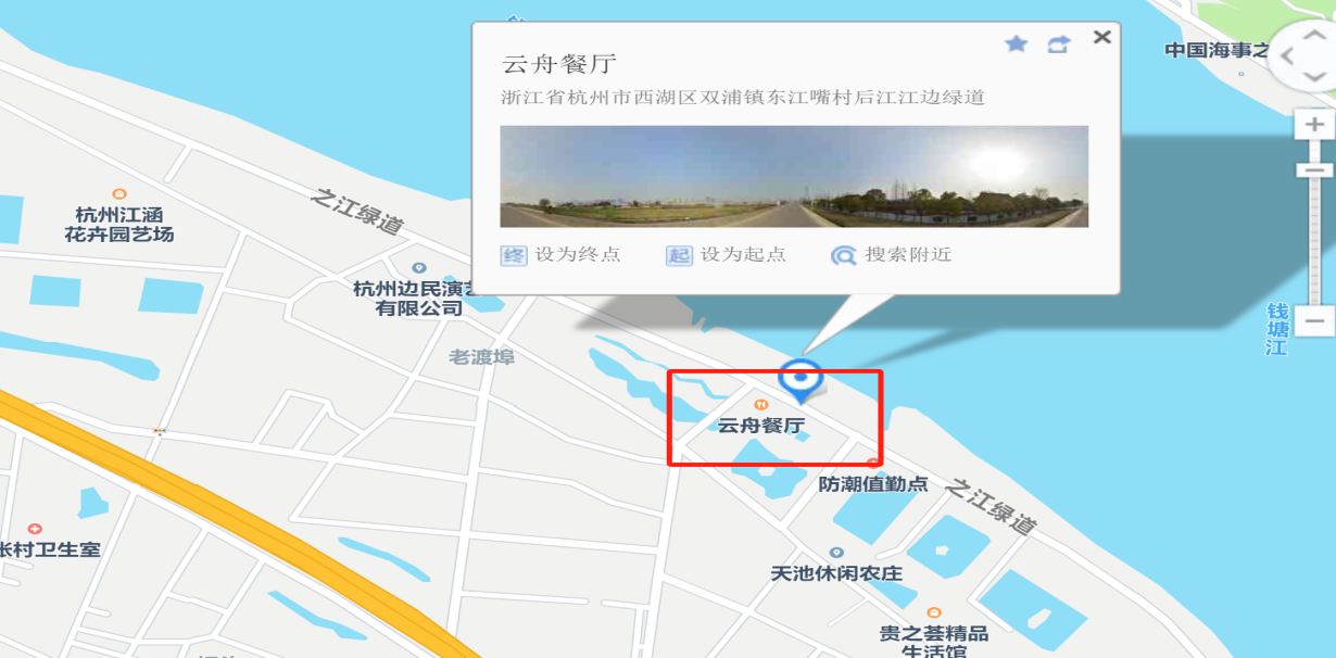 云舟餐厅 杭州市西湖区双浦镇东江嘴村后江江边绿道